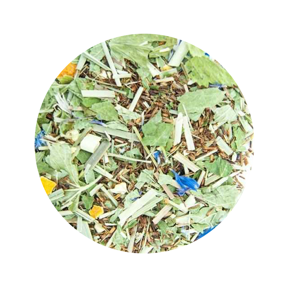 Немов запашний літній сад у передмісті, цей тизан паморочить голову яскравим травно-квітковим ароматом і смаком. Кисло-солодкий і незмінно корисний для доброї половини внутрішніх органів етнічний чай Ройбос є у нашому саду головним. Разом із ним — красиві й ароматні пелюстки волошки (який же сад без квітів?). Листя чорної смородини, м’ята, апельсинова цедра й лемонграс органічно вливаються в композицію, привносять свіжість і легкість.